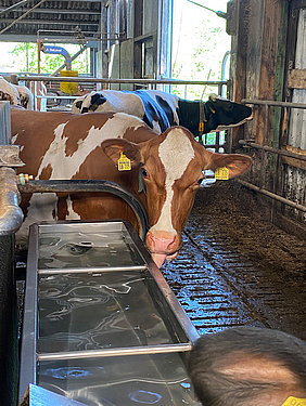 Die jungen Kälber befinden sich für etwa zehn Wochen in der Tränkephase, in der sie mindestens 6-8 Liter, einige bis zu 15 Liter täglich trinken. Parallel wird ihnen Wasser, Heu und „Kälbermüsli“ angeboten, welches wichtig für die Vormagenentwicklung ist.